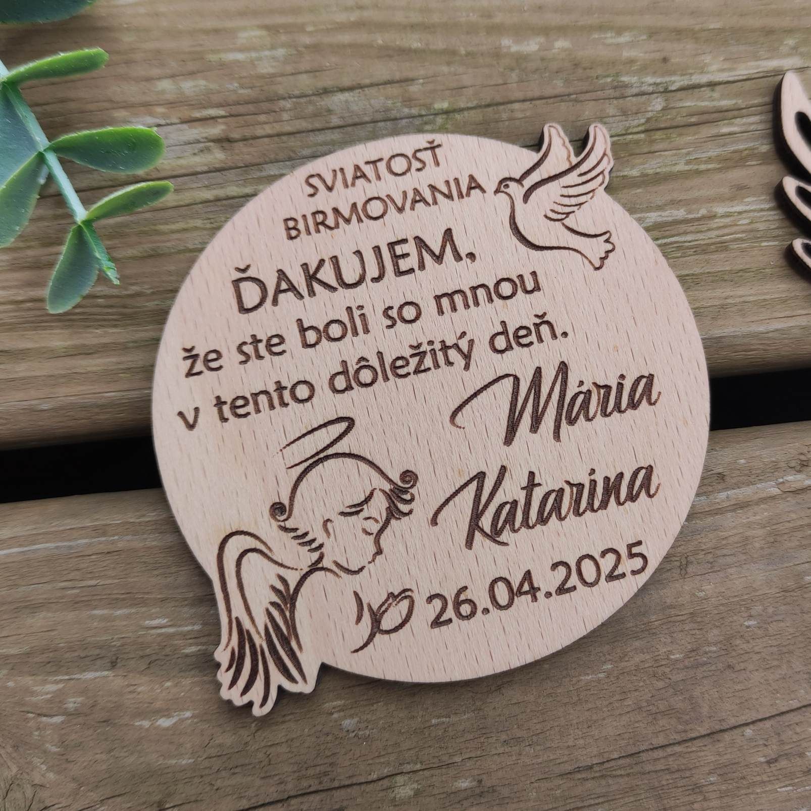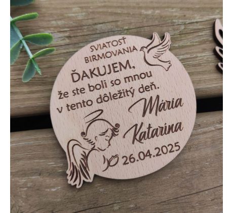Drevená magnetka k birmovke s menom a dátumom