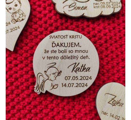 Bukové magnetky s menom, dátumom, prípadne krátkym textom sú skvelou formou poďakovania pre Vašich hostí. Magnetky k sviatosti krstu sú krásnou spomienkou na tento dôležitý deň.