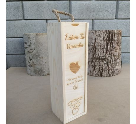 Na drevenú krabicu na víno Vám vieme ešte doplniť krátky text podľa Vášho priania :)
