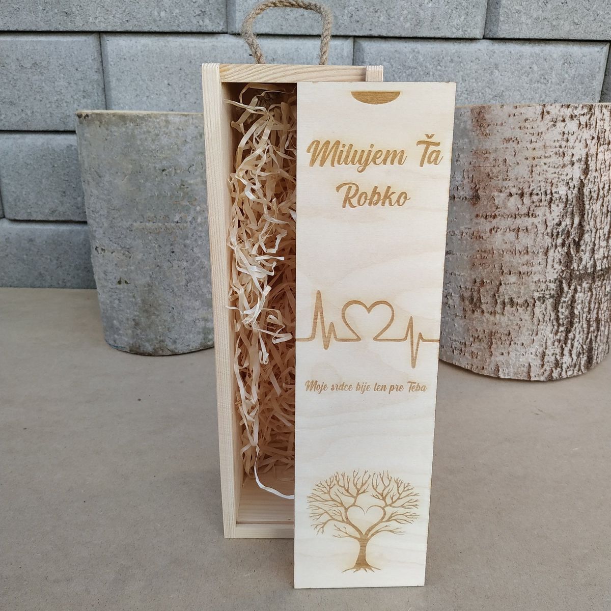 Na drevenú krabicu na víno Vám vieme ešte doplniť krátky text podľa Vášho priania :)