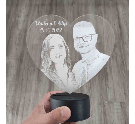 Potešte seba alebo svojich blízkych 3D LED lampou vyrobenou podľa fotky, ktorú zašlete. Lampa so 7 kombináciami farieb (červená, zelená, modrá, biela, žltá, azúrová, fialová) mení farby buď automaticky alebo si vyberiete jednu farbu, v ktorej chcete, aby svietila :)