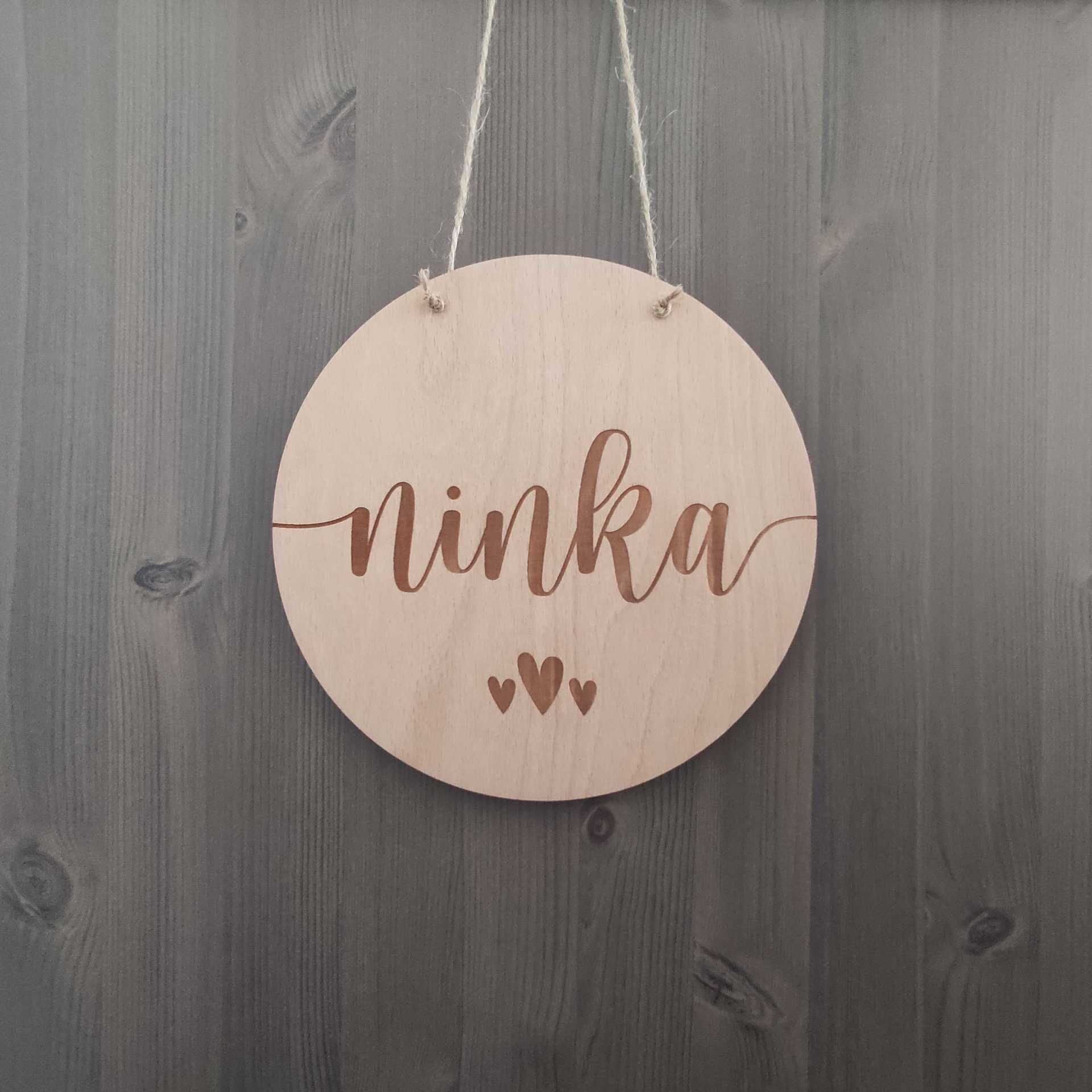 Drevená kruhová menovka na stenu či dvere zútulní každú detskú izbu.