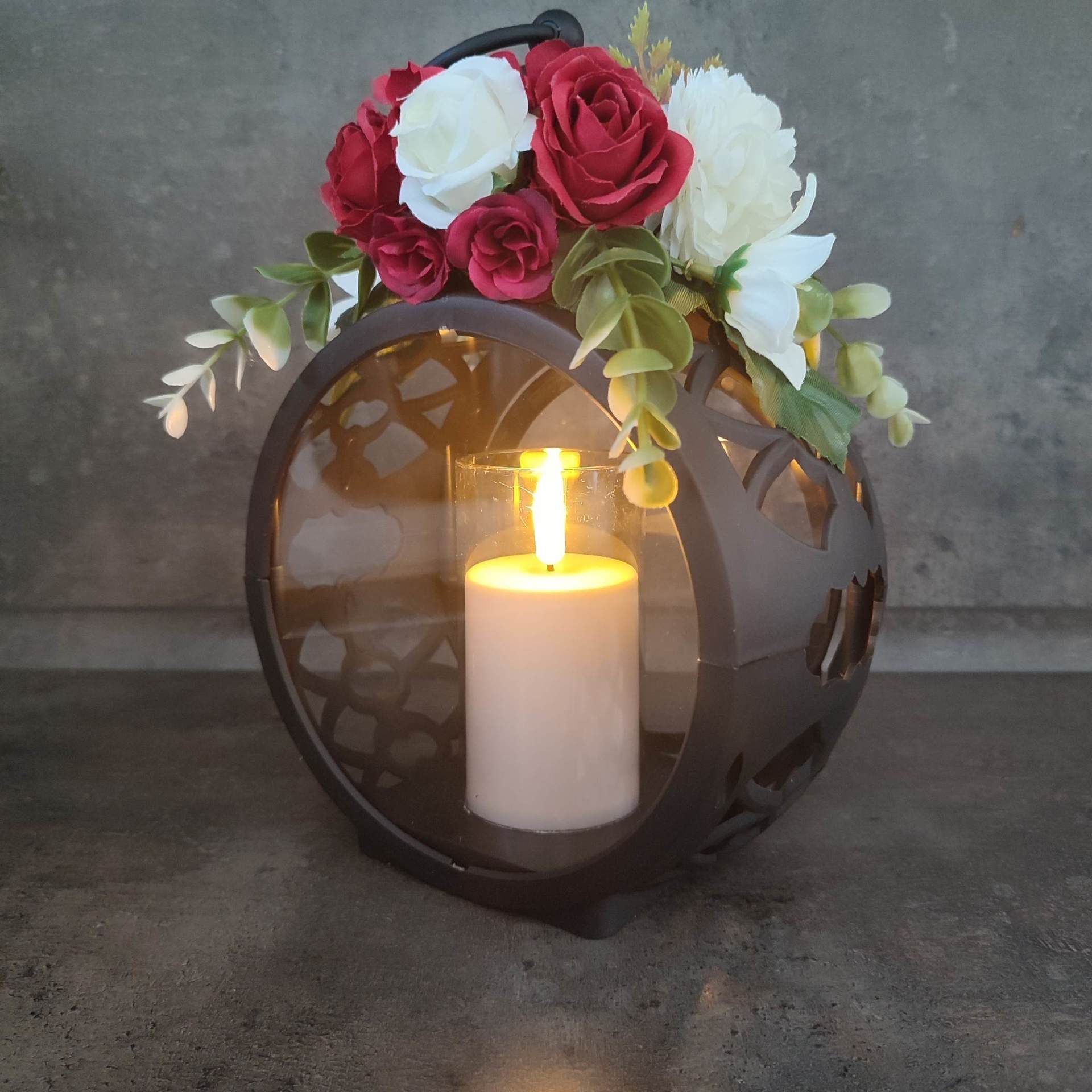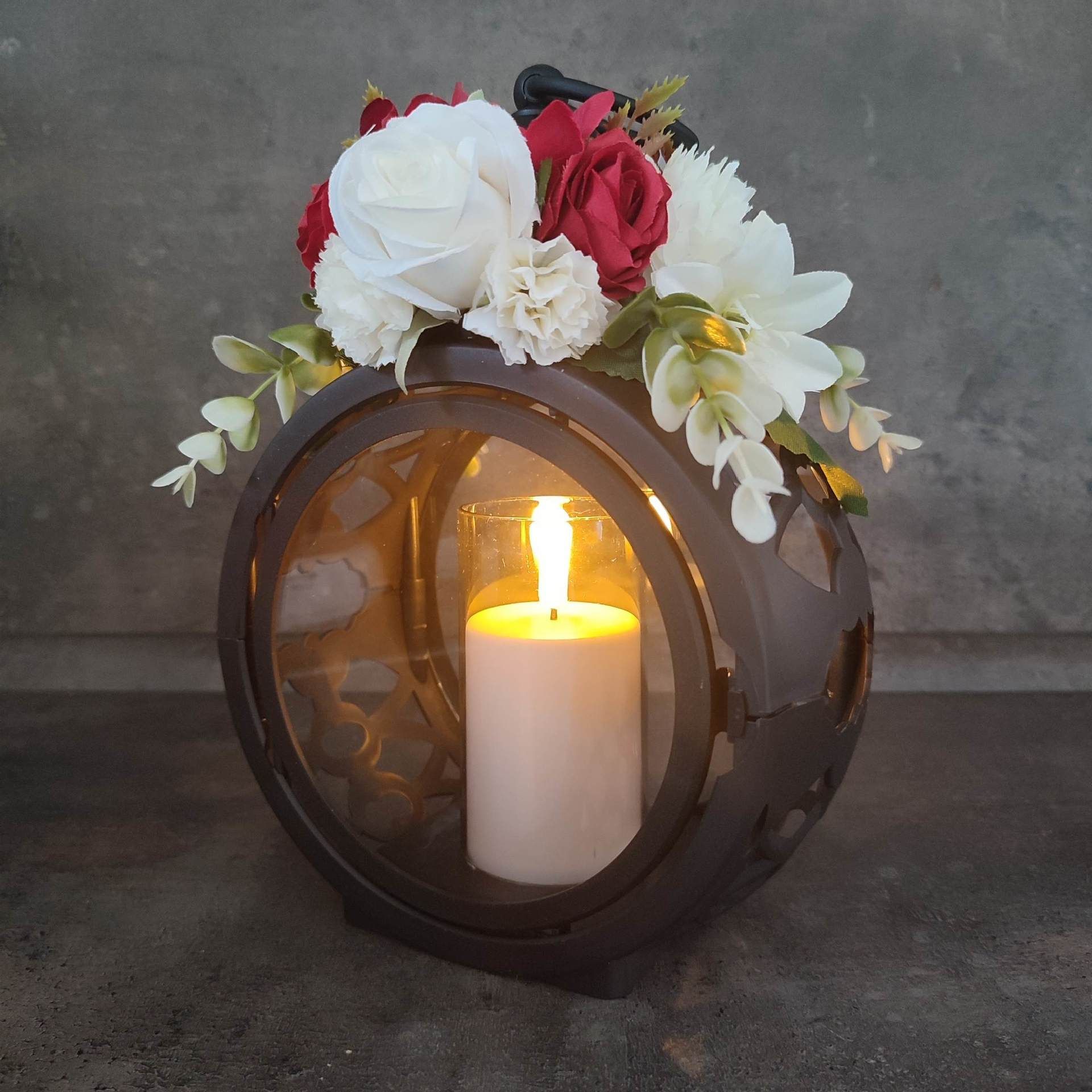 Lampáš je doplnený o jemnú kvetinovú výzdobu, ktorá symbolizuje úctu, lásku a spomienku na tých, ktorí už nie sú medzi nami. Každý kus je ručne aranžovaný s dôrazom na detail a trvácnosť, preto pôsobí prirodzene a esteticky. Vhodný na dušičky, Vianoce, ale aj ako celoročná spomienková dekorácia.