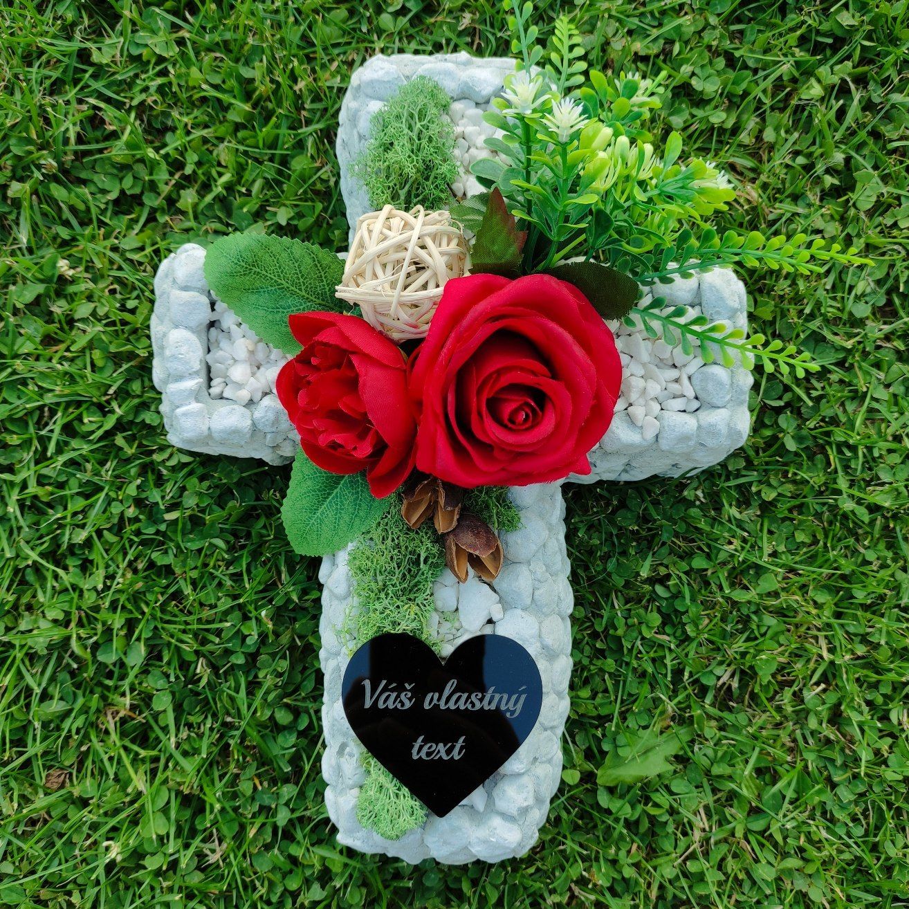 Elegantný kameninový kríž s textom podľa želania ako symbol úcty a spomienky. Ručne vyrábaný aranžmán z našej dielne Vyrobené pre teba, vhodný na hrob ako dekorácia vhodná nielen na Dušičky ale počas celého roka.
