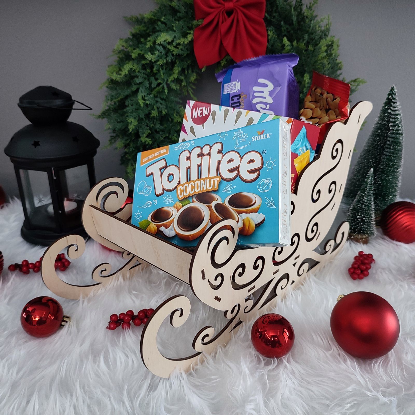 Originálne drevené sane s jemným vyrezávaným vzorom sú krásnym doplnkom vianočnej výzdoby aj nápaditým spôsobom, ako darovať fľašu, sladkosti či iné drobnosti.