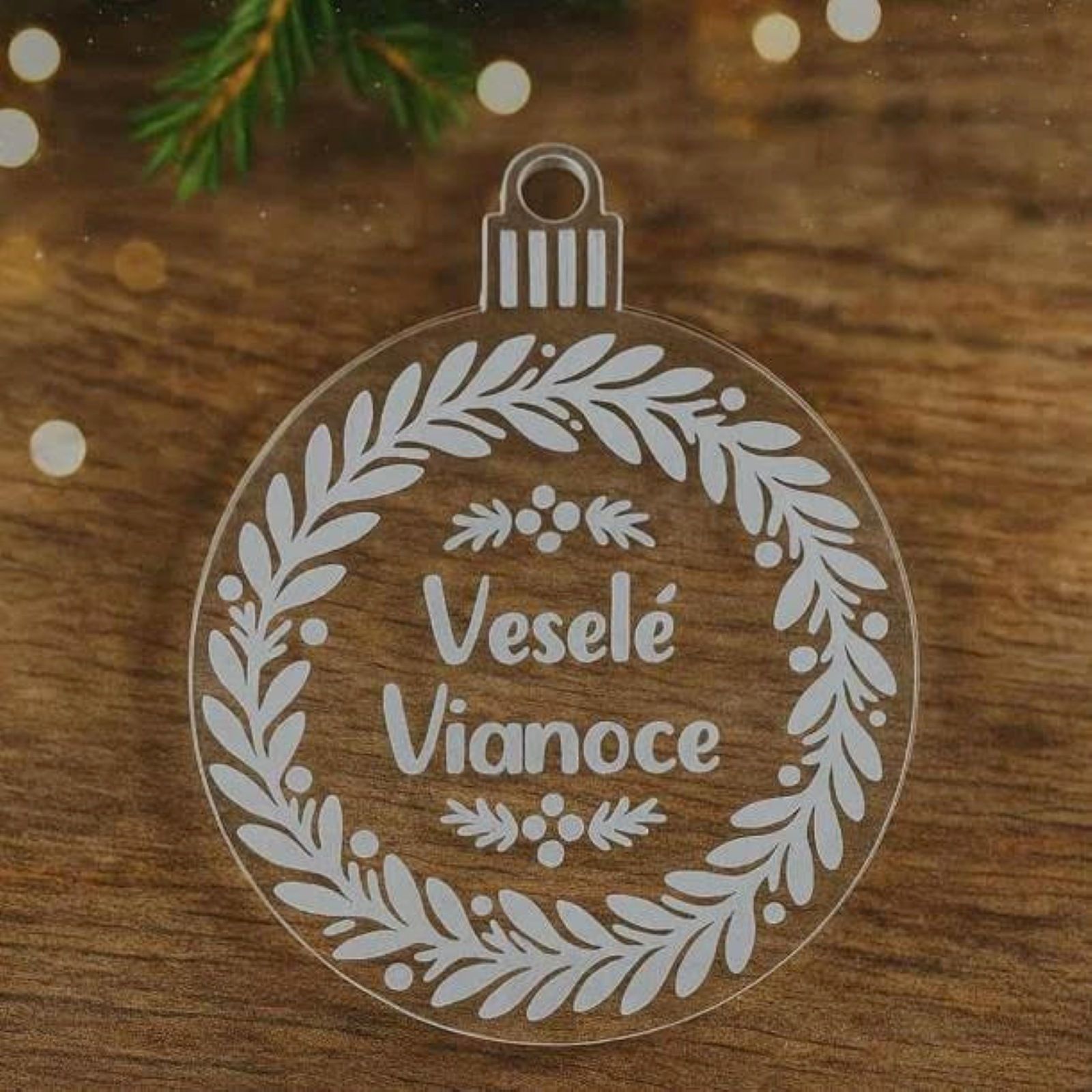 Elegantná vianočná ozdoba z číreho akrylu s gravírovaním.